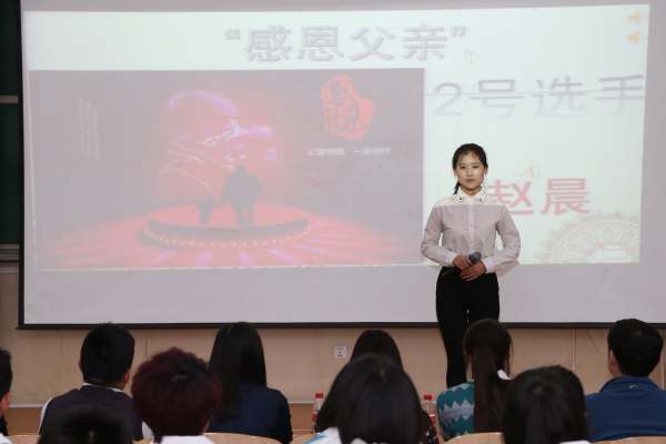 经过之前各系组织的初赛,由各系选送的12名选手参加了此次决赛。比赛中,选手们选取了身边的人和事作为演讲内容,以情真意切的朴素语言抒发了自己对对祖国、对学校、对老师、对父母的感恩之情。演讲有的高亢激昂、铿锵有力;有的娓娓道来、真情流露;有的吐辞清晰,得体大方,各式各样、各具特色,其精彩的表现,赢得了现场听众的阵阵掌声。