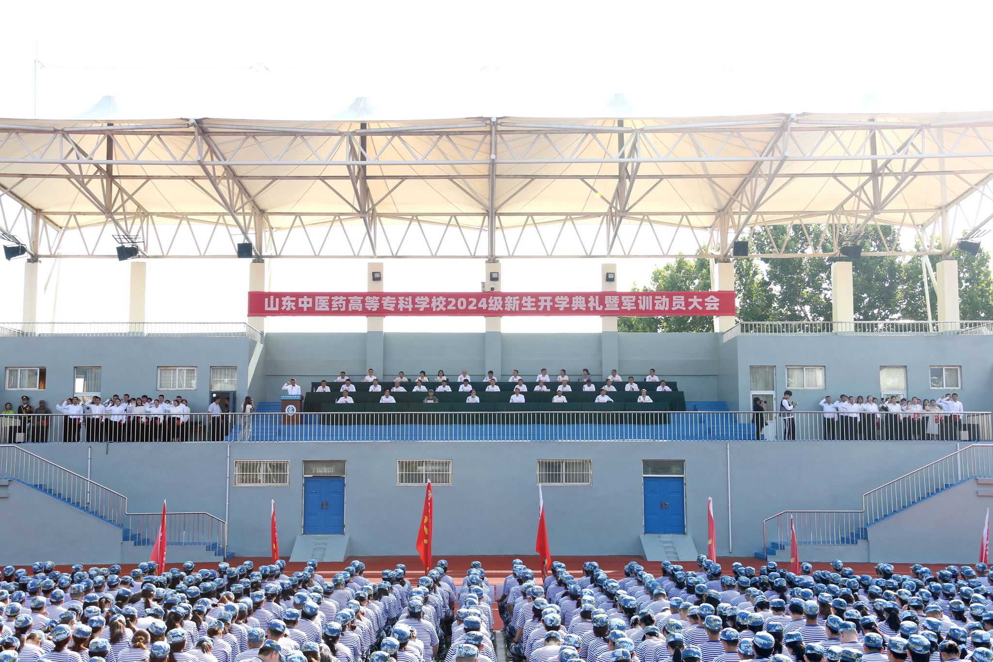 各部门党政负责同志、全体军训教官、2024级新同学及新生班级辅导员参加典礼。